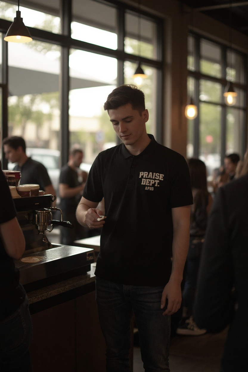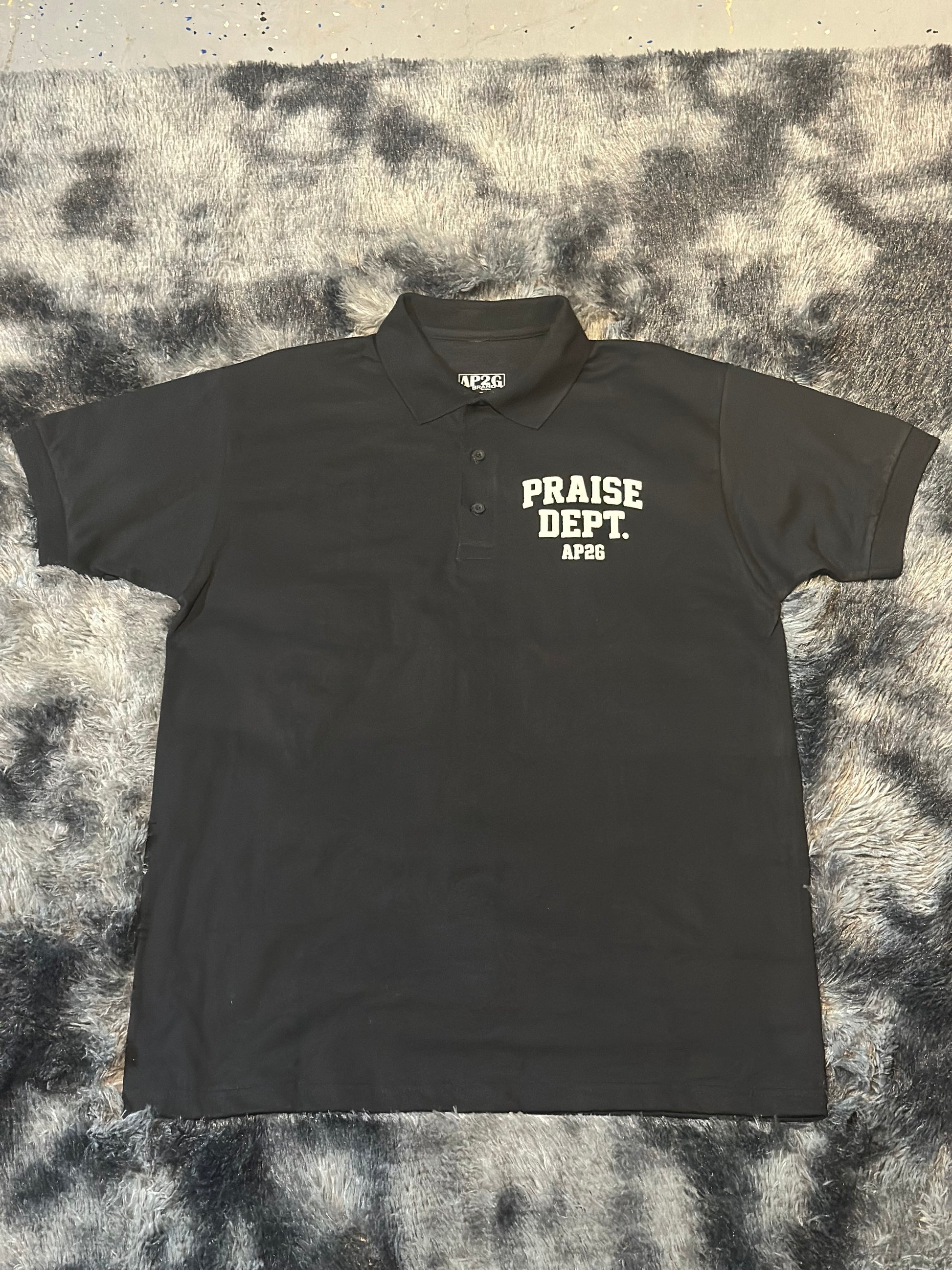 - Design: Classic black polo with bold PRAISE DEPT. chest logo for a timeless yet faith-forward look.